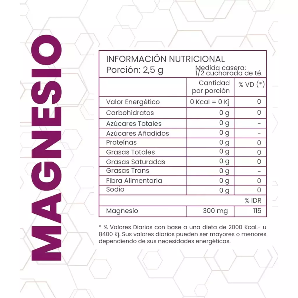 No utilizar en embarazo, lactancia ni en niños. Mantener fuera del alcance de los niños. Consumir según recomendaciones del rótulo. Los suplementos no reemplazan una dieta variada y equilibrada. Consulte a su médico antes de consumir. Supera la ingesta diaria de referencia en magnesio (300 mg por porción). Producto indicado para personas que realizan ejercicio físico, bajo control médico.