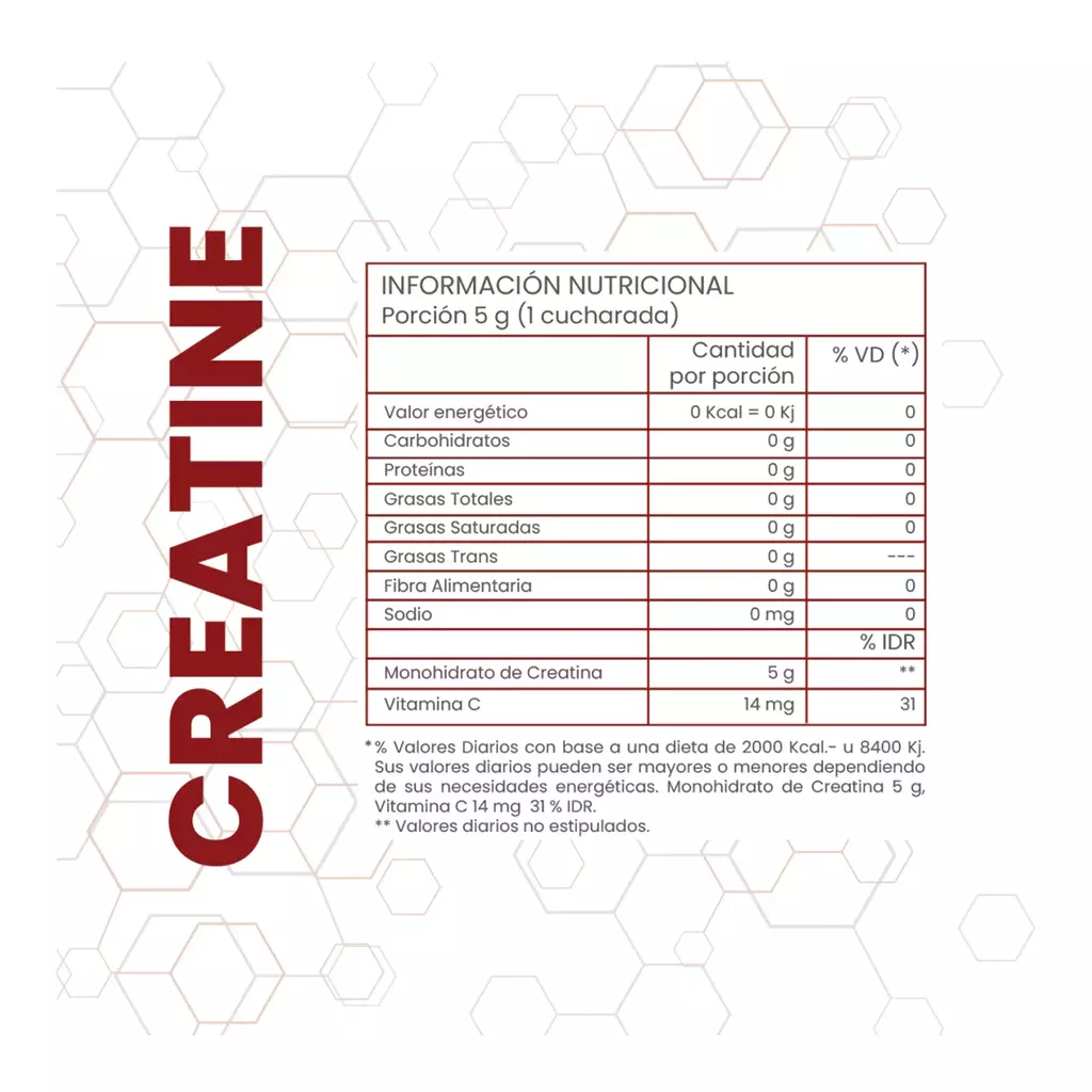 Monohidrato de creatina, vitamina C.